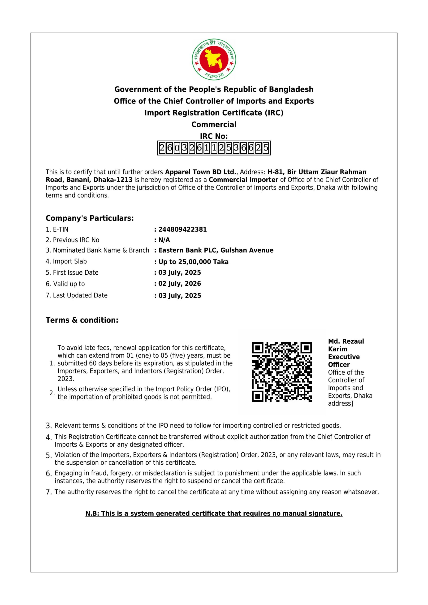 Chairman & CEO, Apparel Town BD Ltd.